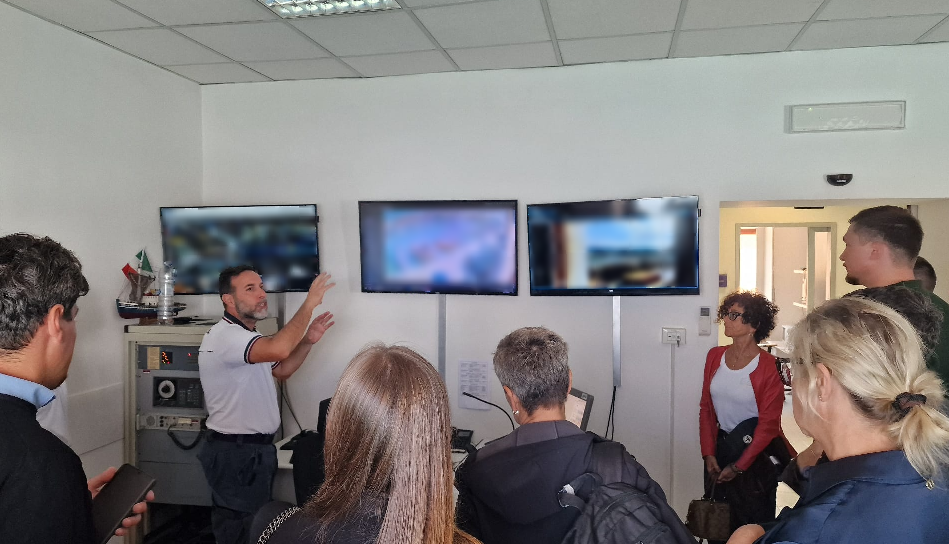 Завершальною подією стало відвідування штаб-квартири капітана порту. В режимі реального часу учасники заходу побачили оброблення інформації стосовно морської охорони, що надається суднами з наміром зайти до порту Ліворно, а також процес регулювання руху суден біля узбережжя Тоскани.