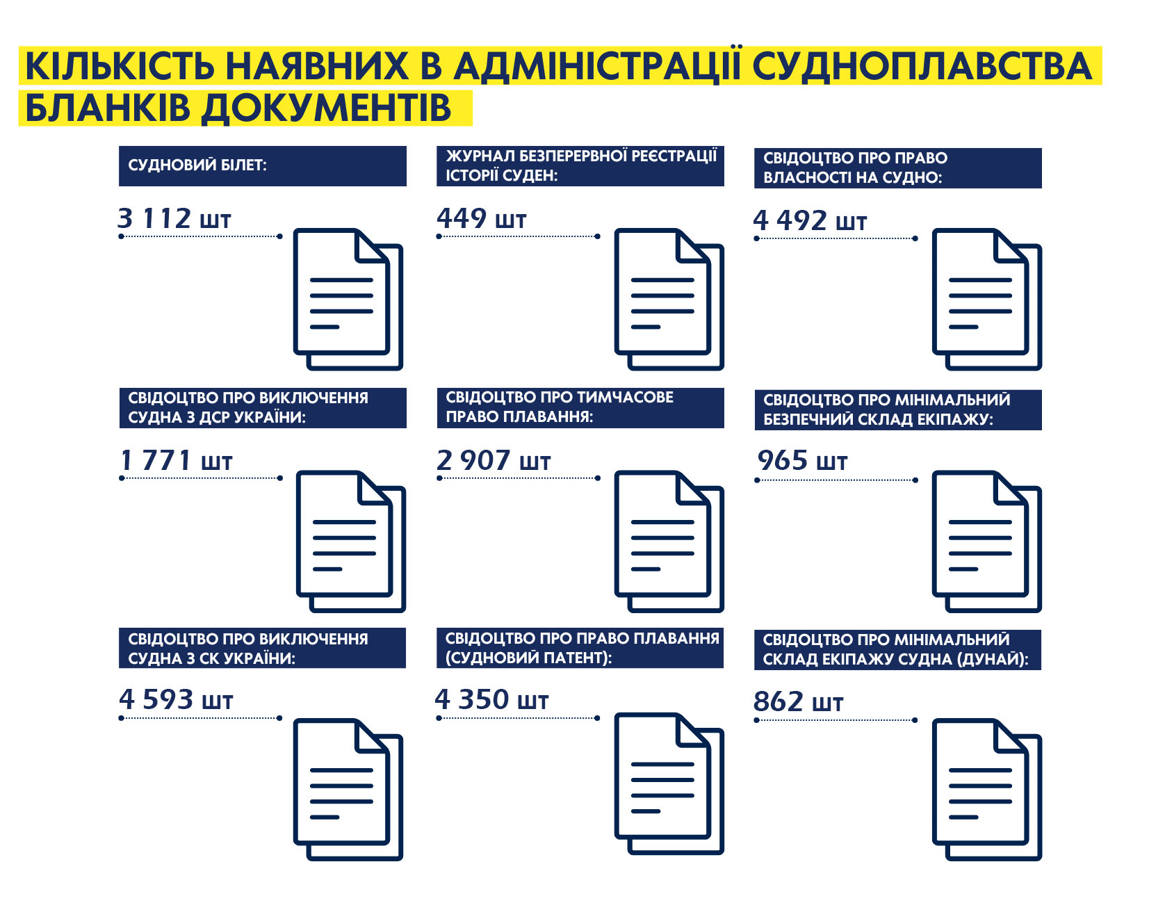 Кількість наявних в Адміністрації судноплавства бланків документів
